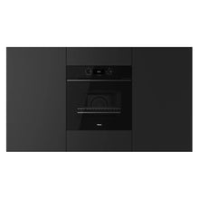 تتميز أفران و ميكروويف إصدار فل بلاك المصنوعة من الزجاج الأسود الأنيق مع لمسات من الفولاذ المقاوم للصدأ الداكن بأناقة عصرية. يخلق مزيج المواد تباينًا مذهلاً، مما يجعله مثاليًا لتعزيز ديكور أي مطبخ.