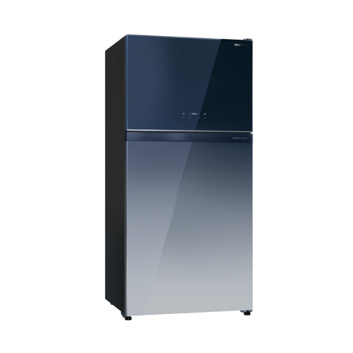 ثلّاجة توشيبا بابين زجاج ( إنفيرتر ) شاشة تحكّم باللمس إل إي دي سعة 554 لتر - أزرق متدرج