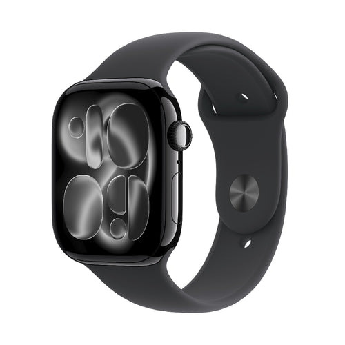 ساعة آبل الاصدار 11 ، نظام GPS، 46 ملم مع غطاء ألمنيوم ، سوار رياضي ، بلون أسود ، S/M