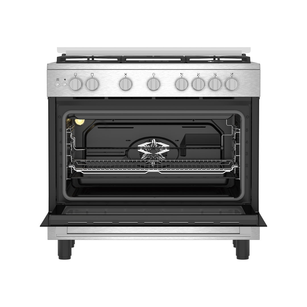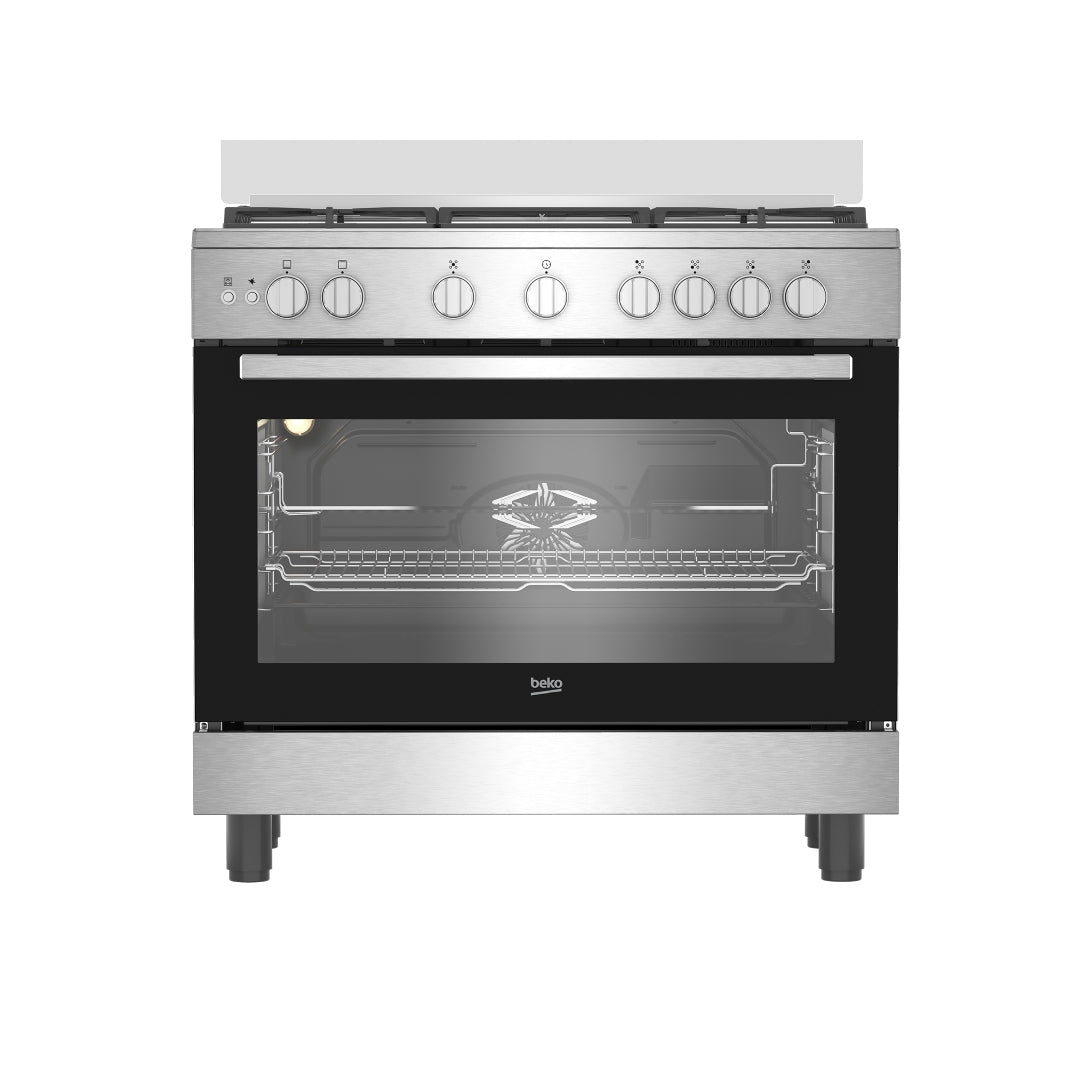 يتميز موقد وفرن الغاز بيكو المستقل (90 سم) بإضاءة هالوجين، مما يوفر رؤية واضحة لداخل الفرن دون الحاجة لفتح الباب وفقدان الحرارة، مما يتيح لك متابعة الطهي مع بقاء الباب مغلقًا بإحكام. كما يحتوي على ميزة سلامة الغاز التي تقوم بإيقاف تزويد الغاز تلقائيًا إذا انطفأت الشعلة بسبب غليان الطنجرة أو هبوب الرياح، مما يضمن عدم حدوث تسربات خطيرة. يحتوي الفرن على تجويف غاز معتمد على المروحة .