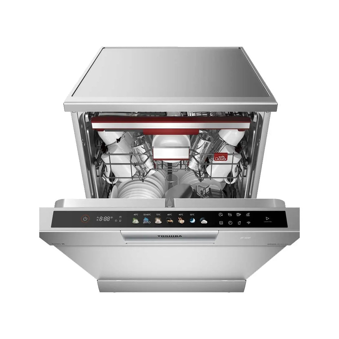 تم تصميم غسالة الصحون من توشيبا لتوفير أداء استثنائي وراحة فائقة، بفضل تقنية XTRA SPACE التي تستوعب حتى 16 طقماً من الأواني، بما في ذلك الأطباق الكبيرة والحاويات الطويلة — مثالية للعائلات والمناسبات. تعتمد على تقنية Dual Inverter المزودة بمحركين BLDC لتوفير غسيل قوي وهادئ وموفر للطاقة مع موثوقية تدوم طويلاً. يضمن نظام 720° Cross Wash الحصري من توشيبا تنظيفاً عميقاً وشاملاً حتى مع الحمولة الكاملة، بينما تعمل تقنية Pure Steam على توليد بخار بدرجة حرارة تصل إلى 120 درجة مئوية لإزالة الدهون القاسية وبقايا الطعام العنيدة للحصول على نتائج نظيفة وصحية تماماً. وأخيراً، تضمن تقنية Great Flow استخدام مياه نقية في كل دورة غسيل من خلال طرد المياه المستخدمة بالكامل، مما يوفر تجربة تنظيف منعشة وصحية في كل مرة.