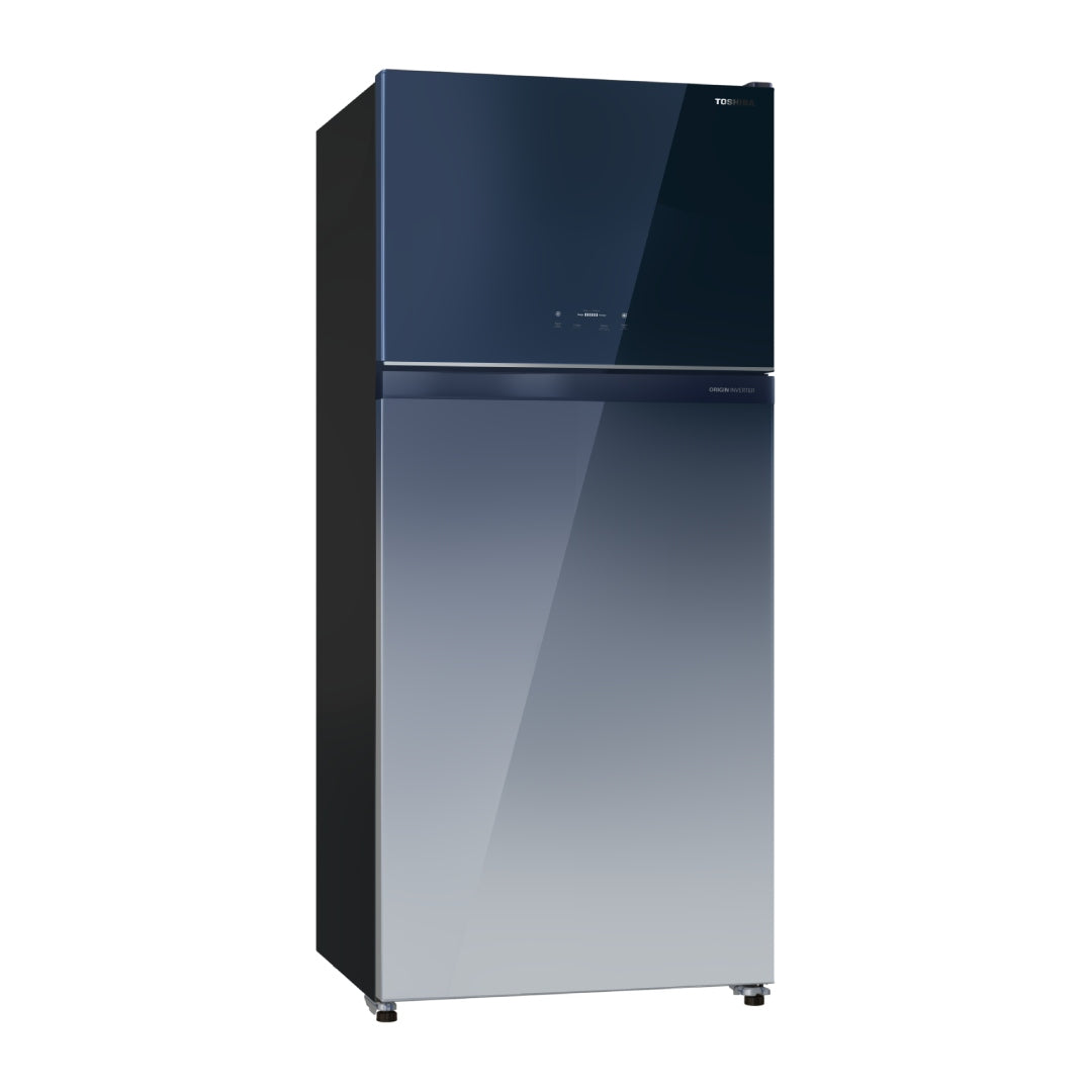 ثلّاجة توشيبا بابين زجاج ( إنفيرتر ) شاشة تحكّم باللمس إل إي دي سعة 608 لتر - أزرق متدرج