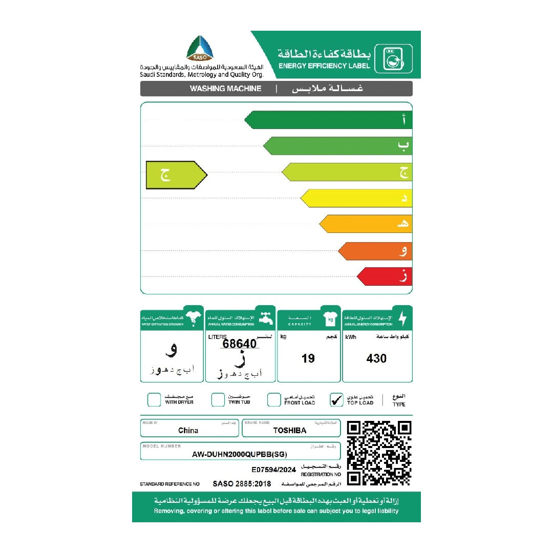 تُعد غسالة توشيبا العلوية الأوتوماتيكية AW-DUHN2000QUPBB(SG) بسعة 19 كجم خيارًا مثاليًا للعائلات الكبيرة أو لأولئك الذين يحتاجون إلى غسل كميات كبيرة من الغسيل مثل البطانيات والمفروشات الثقيلة. تأتي هذه الغسالة مزودة بتقنية العاكس (الإنفرتر) التي تضمن تشغيلًا هادئًا واستهلاكًا منخفضًا للطاقة مع الحفاظ على أداء قوي وطويل الأمد.